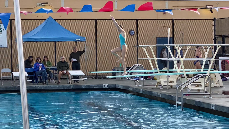 For Varsity diving we train six days a week. I've competed in meets for three years. Recently, I've been mentoring all new divers and training in and out of the water. Senior year I was elected co-captain.